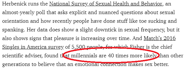 Grade-grubbing the GSS by saying it doesn't account for me being an artisanal unique snowflake and my *feelings* are what count is somehow even more distinctively millennial than the actual behavior of being a sexless onanist (h/t @JayLivingston)https://www.cosmopolitan.com/sex-love/a27816619/millennial-sex-recession-false/ …