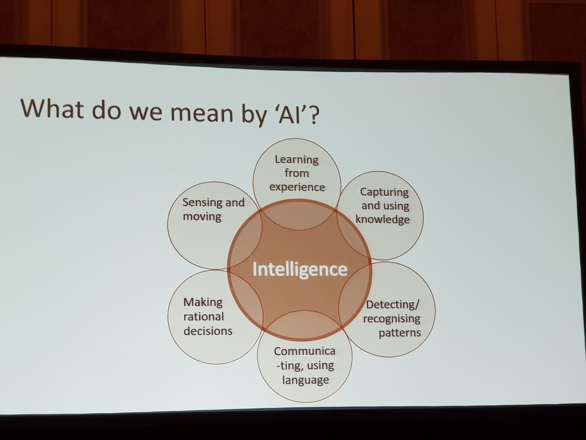 And then he comes to my fav topics: What is #AI? What is #intelligence? Why? My point is that you should not address #ethical concerns nor #AIEthics without first #defining these concepts. "#AI: making things as smart as humans (or smarter)." @razzrboypic.twitter.com/LPd4tX9Mau