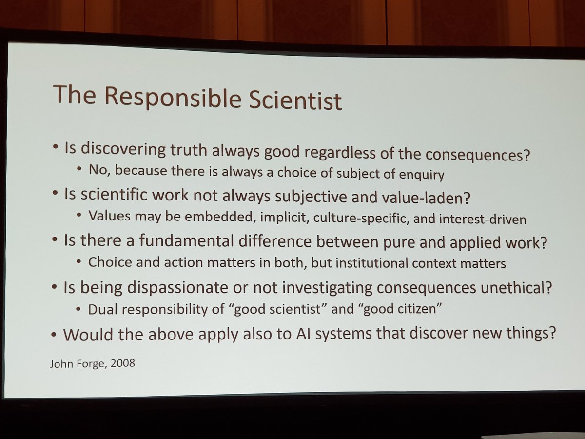 "Science affects people. [It] can cause, enable, facilitate, mitigate, or prevent consequences." @razzrboy Are we #responsible? Are we responsible scientists? The Responsible Scientist 👇 #AI #AIEthics #ethics @IJCAIconf #IJCAI_2019 #tutorialpic.twitter.com/pP28wKIyoH