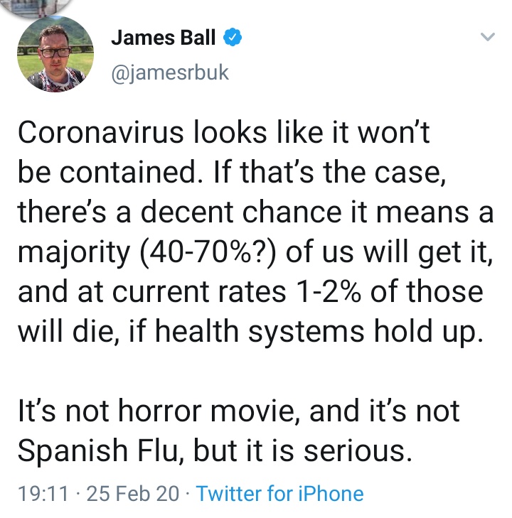 The more concerning thing is that 5% of cases are critical. Possible to cope with that at 75,000 detected cases. At a million, 10 million? The CFR goes non linear. It’s natural rate without ICU availability is probably between 5-10%