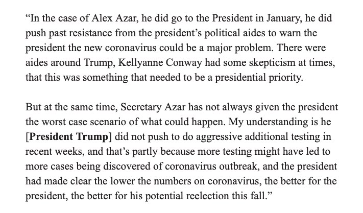 It's not just a question of worst case outcome. Even if only 1M people die and people realize that this could have been avoided, Trump will lose the presidency. Worst case is more like 16M. He could have become a successful war time president. Azar should have resigned.