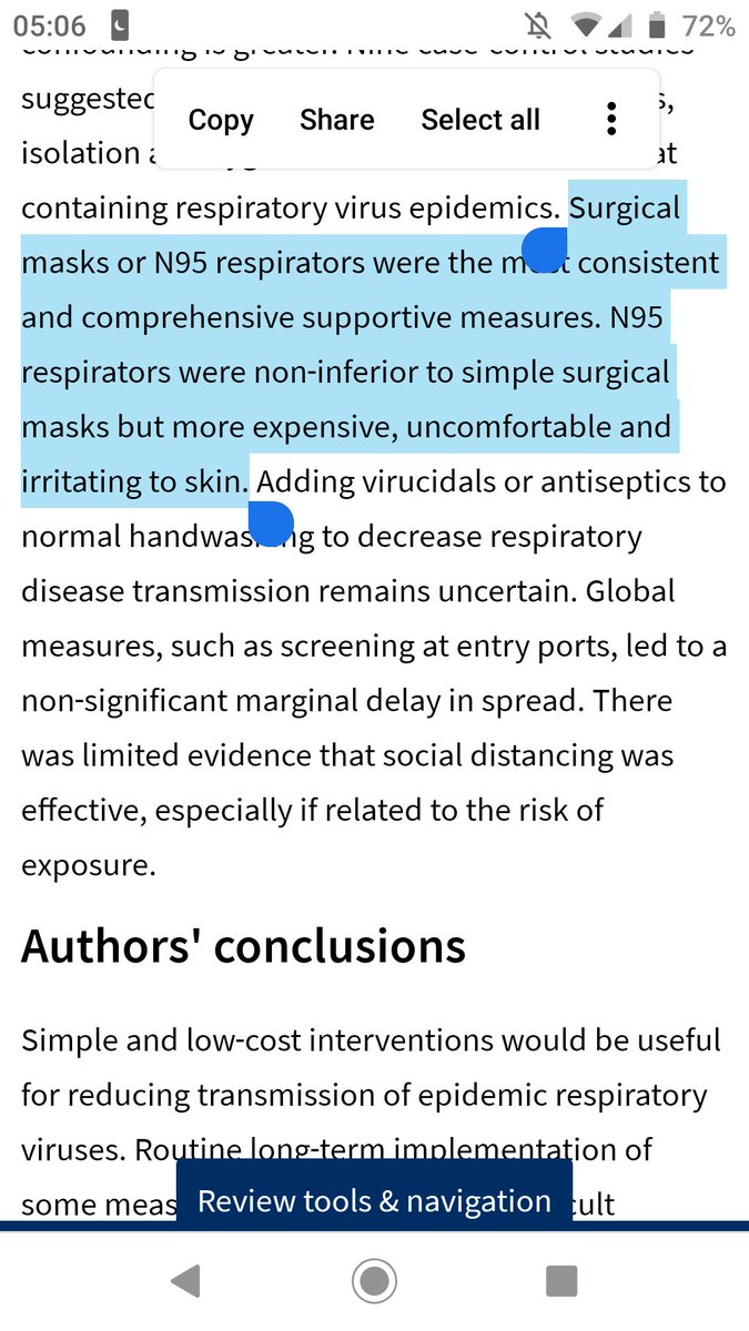 Neither of those studies says what you claim. Furthermore, given that there is a huge shortage of masks, the question isn't whether they might help randos at home *slightly*. The question is who needs them *most*, and that's clearly healthcare workers and the immunocompromised.