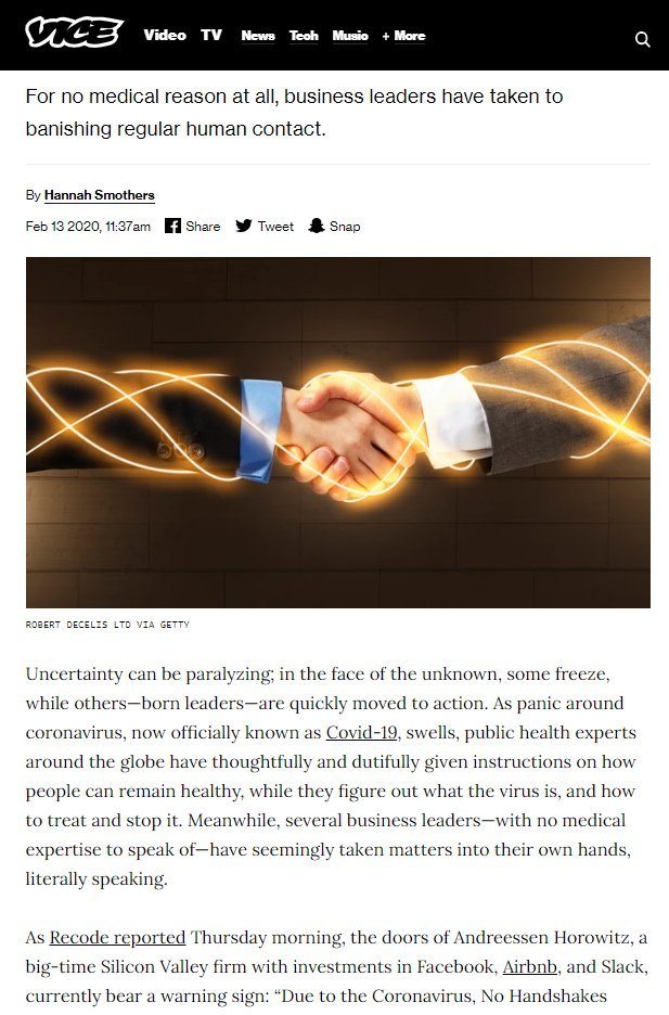 Can’t stop thinking about how right Balaji was, and how silly mocking “no handshakes” as “tech bros are overreacting” looks nowhttps://twitter.com/balajis/status/1228447944287932416 …