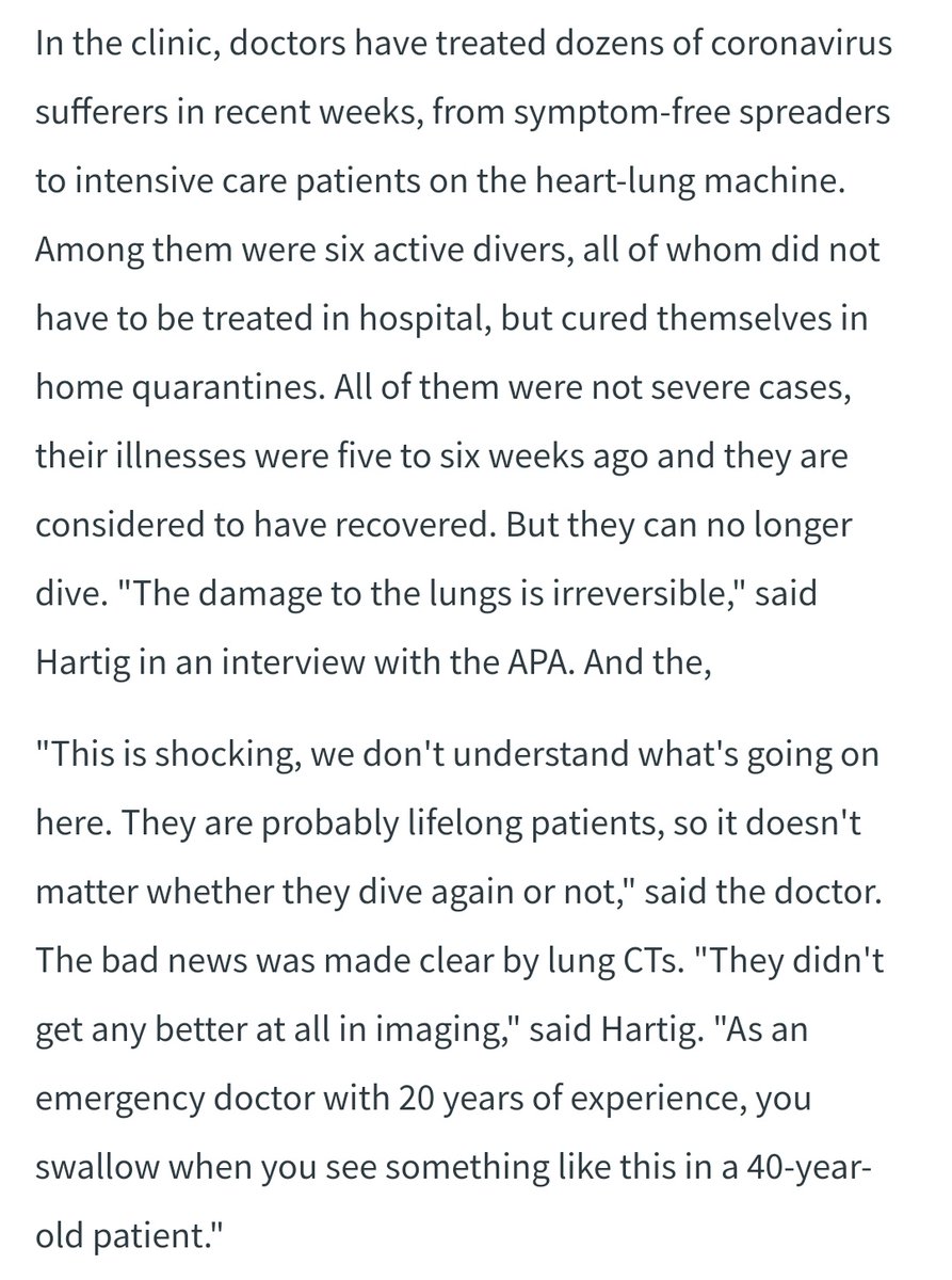 divers who recover from #coronavirus infection can't dive anymore because of the lung damage they suffered from#COVID19, according to a new