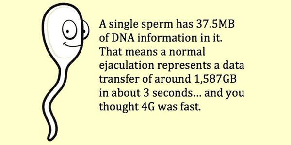 @pickover A sperm should have more like 750MB, so it is more like 128 Petabyte
