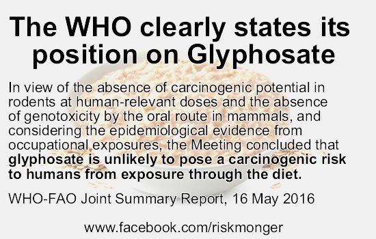Breaking news:WHO contradicts IARC.Glyphosate probably not carcinogenic! Victory for farmers http://www.who.int/foodsafety/jmprsummary2016.pdf?ua=1 …pic.twitter.com/kktcNaMKZh