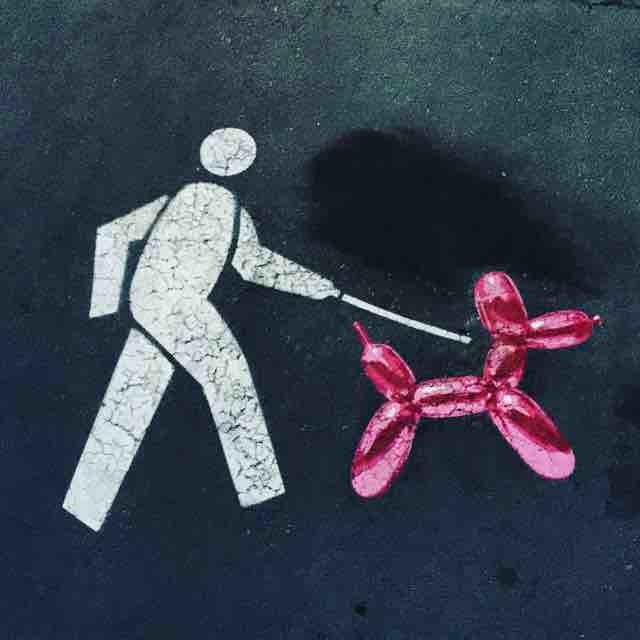Why does the evil man explode the ballon dog with his needle?