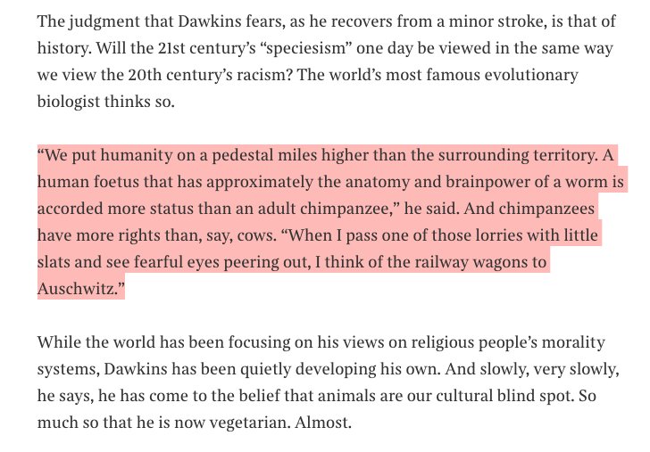 .@RichardDawkins on speciesism, taking animal suffering seriously and how he is now nearly vegetarian! Amazing! https://www.thetimes.co.uk/article/when-i-see-cattle-lorries-i-think-of-the-railway-wagons-to-auschwitz-m3t0hntmk …pic.twitter.com/tChhMZ0Jqa