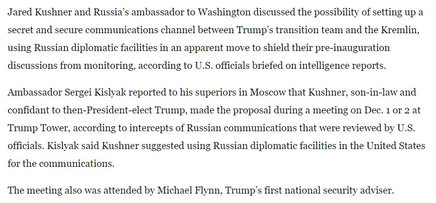 Hehe, note how the Russians made sure to discuss the rejection of Kushner's request over a non-secure channel. Cleverly done.