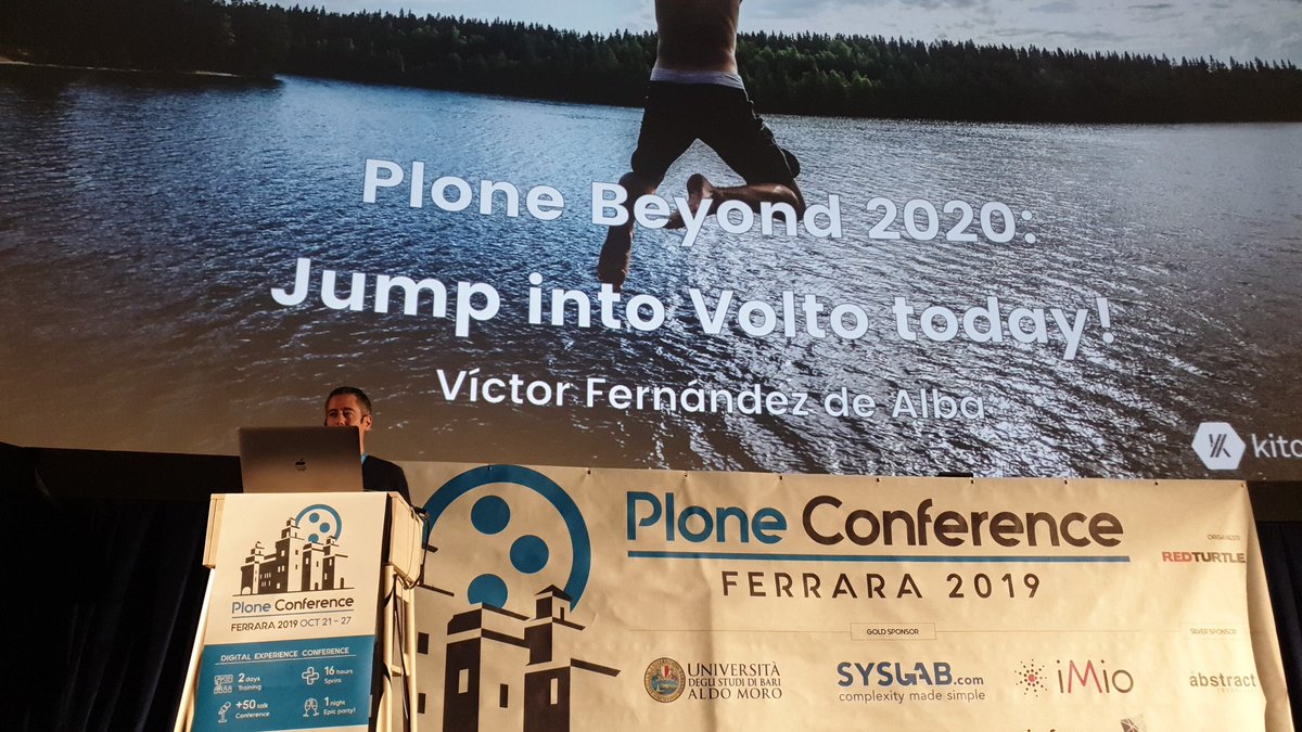 #ploneconf2019 Victor Fernandez de Alba : Plone Beyond 2020: Jump into Volto today!pic.twitter.com/4dHmjKIV9v