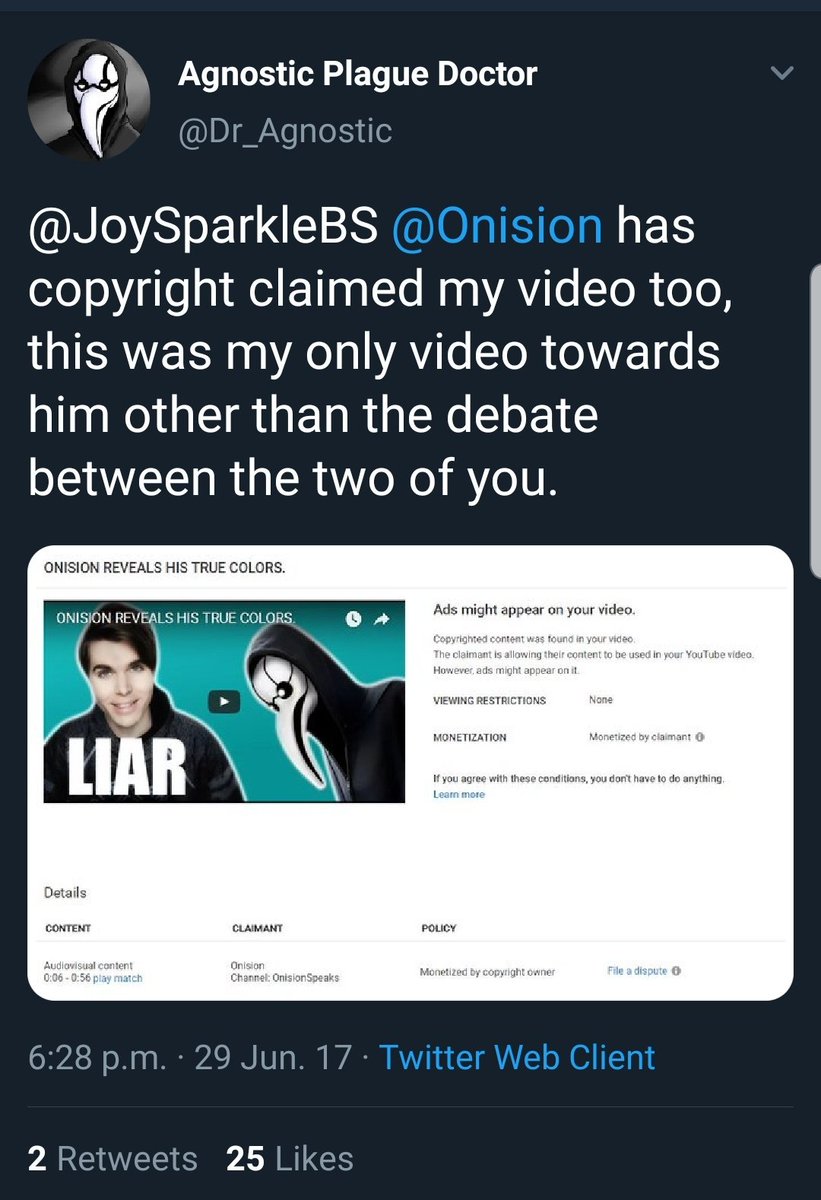 Everyone so far that's provided screenshots of being copyright claimed by Onision (Thread)pic.twitter.com/EmeSWX2G9o