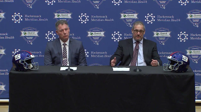 Pat Shurmur looks like he just found out his dog died. Turns out it's just Dave Gettleman explaining that Daniel Jones might sit behind Eli Manning for three years.pic.twitter.com/EwPMgei4gr
