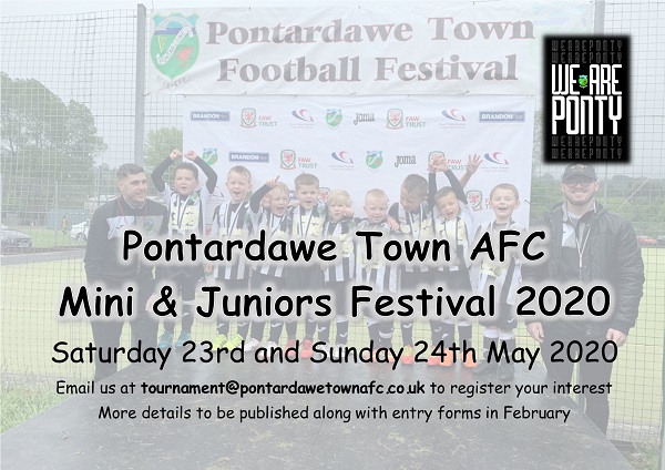 A date for everyone's diary … our annual football festival will take place on Saturday 23rd and Sunday 24th of May 2020 Full details due in February so register your interest by emailing us your details at tournament@pontardawetownafc.co.uk
