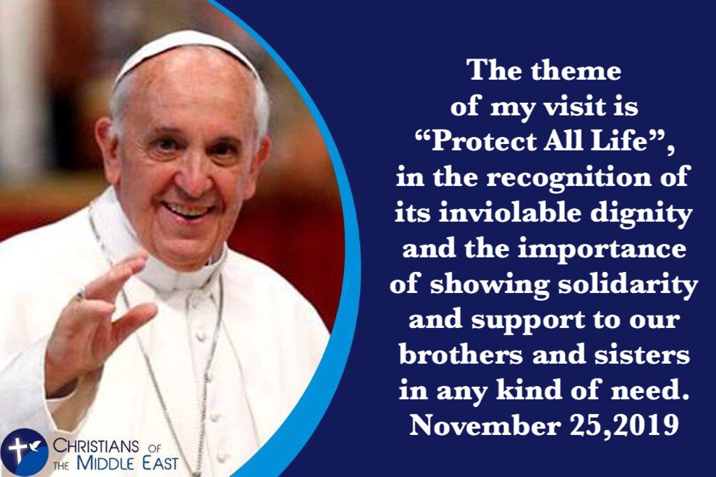 The theme of my visit is “Protect All Life”, in the recognition of its inviolable dignity and the importance of showing solidarity and support to our brothers and sisters in any kind of need. #ApostolicJourney