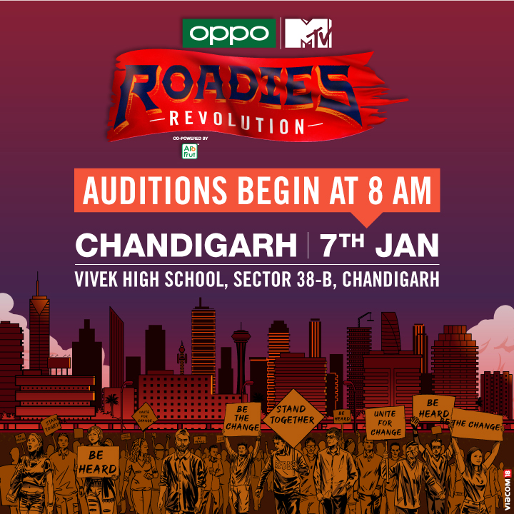 Tell us how excited you are for a dhamakedaar season of OPPO MTV Roadies Revolution in the comments below & show us all that you are made of at Vivek High School,Sector 38-B, Chandigarh on 7th Jan!