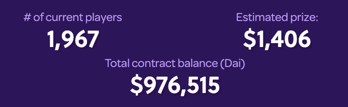 Three weeks from @EthDenver 2020 and 25k shy of $1 MM in the pool and 2,000 players waiting for this weeks drawing. It's been a riveting road, can't wait to see what's ahead of this team.