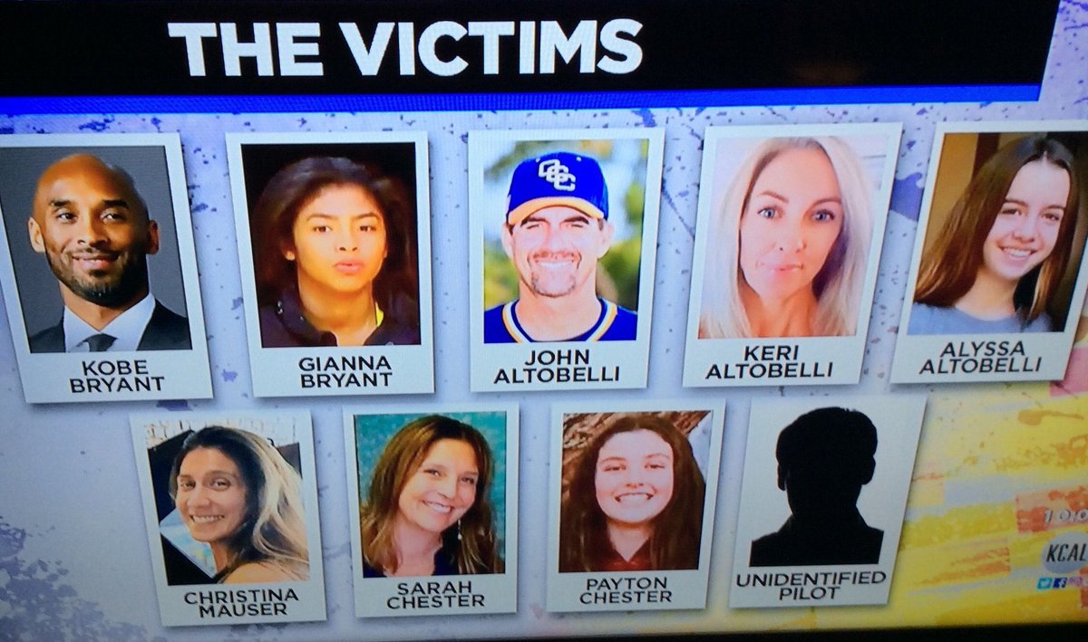 May the Altobelli family be named and celebrated aswell. John along with his wife, Keri, and daughter, Alyssa were more than just the other passengers. Cris, Sarah and Jay Chester aswell deserves our prayers . It’s not about the