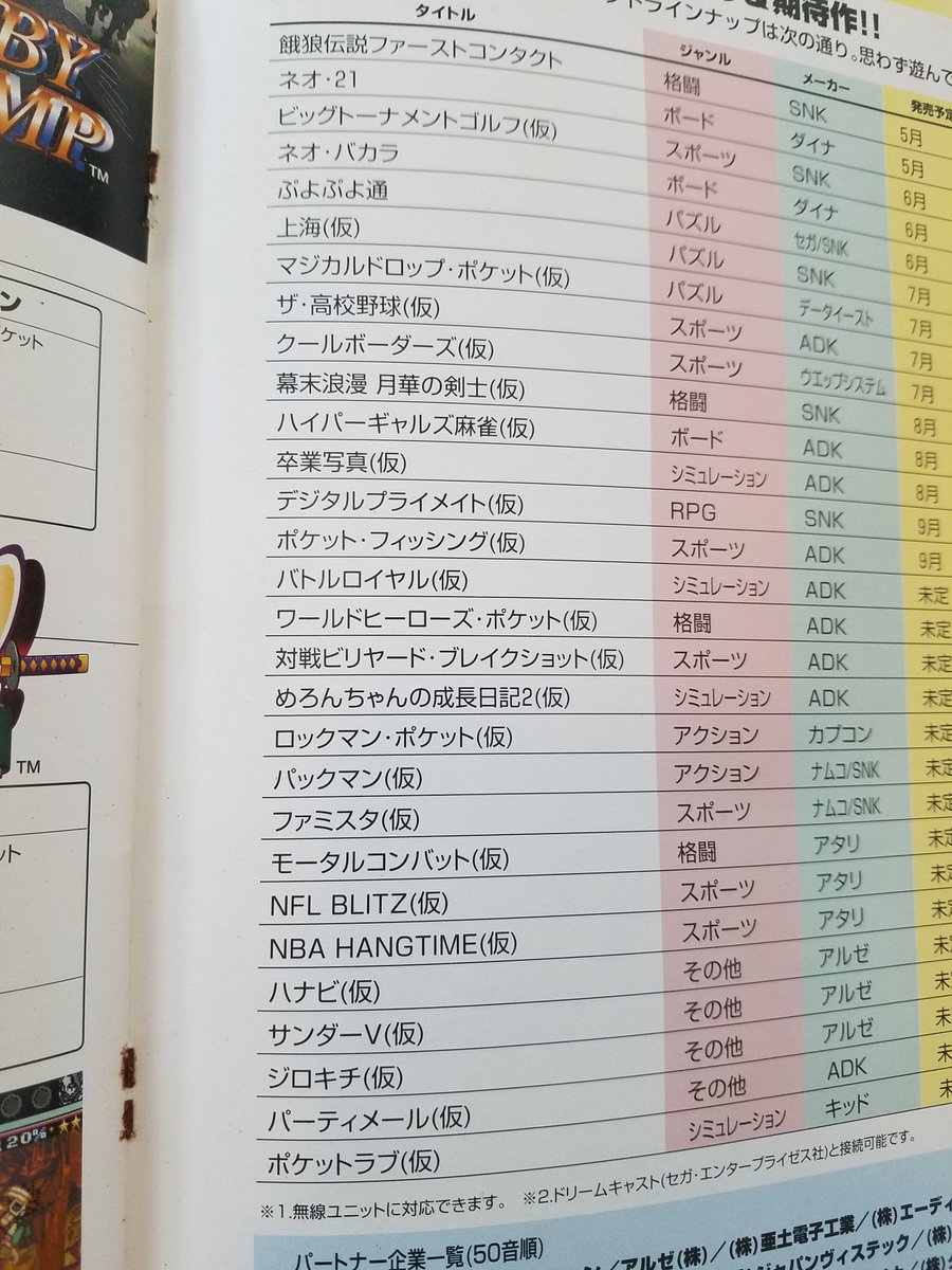 An unreleased Mortal Kombat game for the Neo-Geo Pocket Color was also listed on SNK's Tokyo Game Show 1999. It's unclear if this was going to be an original game or a port of MK4 for the GBC released around the same period.https://twitter.com/turfmasta/status/960044991031758848 …