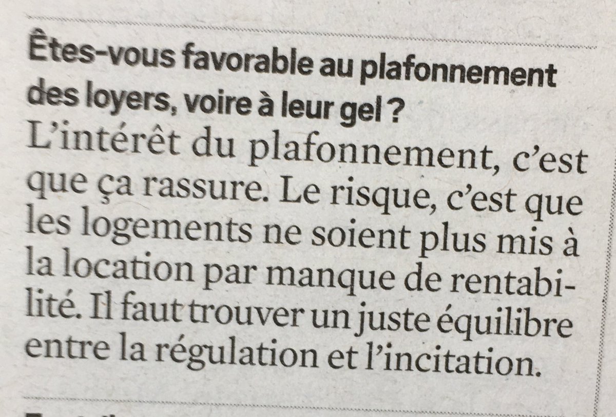 @leJDD@agnesbuzyn est interrogée sur la question des loyers; et notamment leur plafonnement. Elle répond par la question de la rentabilité. Au moins c’est clair, elle veut clairement remettre en cause l’encadrement des loyers. Pour rappel 2/3 des parisiens sont locataires.pic.twitter.com/xUskKsZivG