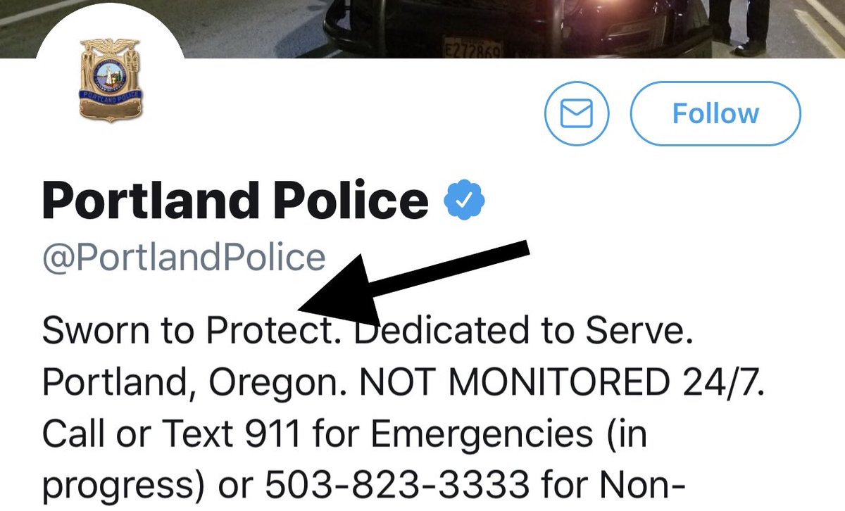 @PortlandPolice if the worthless mayor told you to stand down. You are cowards, traitors, and a disgrace to your badge. Resign, or protect & serve.pic.twitter.com/s9KxEEOBep