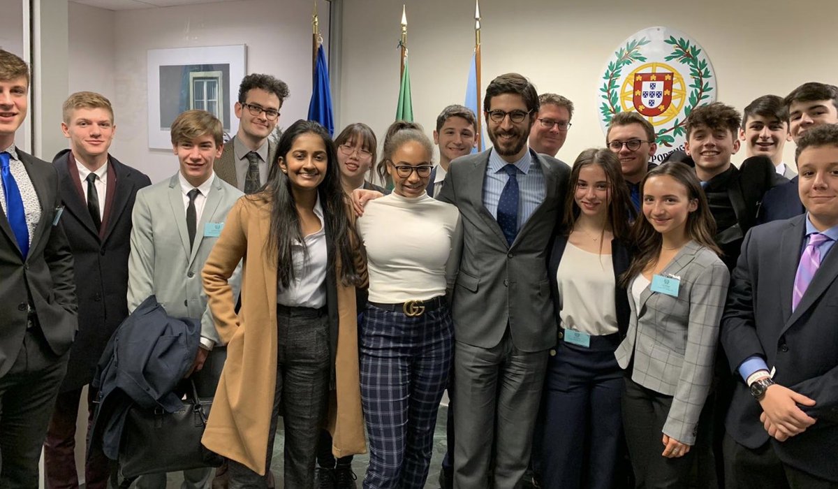 @Portugal_UN met today with high-school students participating in the Columbia Model UN conference #CMUNCE. An opportunity to communicate Portugal’s commitment to #sustainabledevelopment and our policies to favor renewable energy and fight #climatechangepic.twitter.com/rRDfUigPWX