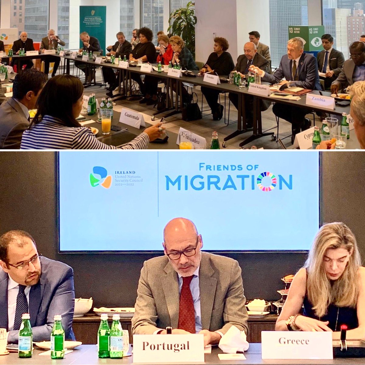 Thank you @irishmissionun for hosting today's meeting of the Group of Friends on #Migration, focused on the nexus btw #climatechange and migration. @Portugal_UN stressed the need for #HumanRights of migrants, #climatechange mitigation & implementation of #GlobalCompactMigrationpic.twitter.com/3ClhpRGfGw