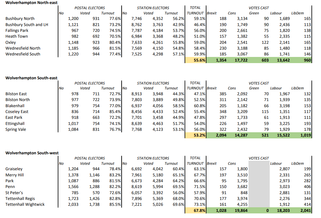 #postalvote stats for#Wolverhampton South West@Eleanor_Smith55@IanLaveryMP . Tory votes increased with postal vote turnout in#Wolverhampton but only in the marginal SW Phantom Postal Votes? We can only see this when the data is provided at ward level