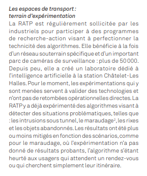 C'est aussi l'emplacement du "laboratoire dédié à l’intelligence artificielle" de la RATP, dans l'espoir de repérer des "comportements anormaux"