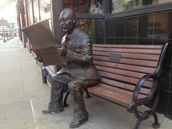 Thanks @jlockwoodTT! He looks well-kept. Glad to see it. Is he ever victim to any shenanigans? @Poynter #journaliststatues