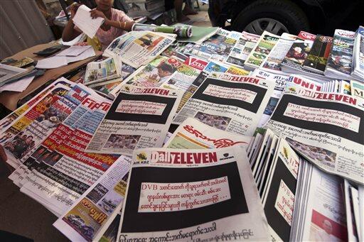 MT @Poynter Newspapers in Myanmar ran blacked-out front pages to protest journalist arrests http://bit.ly/1egHeyv pic.twitter.com/F0fgqdjhms