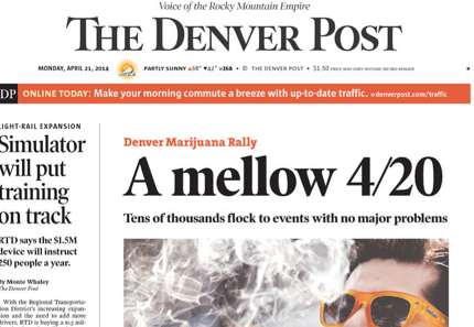 Newspapers observe 4/20: http://bit.ly/1jrabnM (Sunday was also deadline to apply to be new Denver Post pot critic)pic.twitter.com/0Y3NqYv7nZ