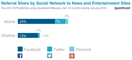 .@Quantcast report: social drives 34% of mobile traffic, 17% of desktop traffic http://bit.ly/1gs7ebQ pic.twitter.com/OzhDbptAoX