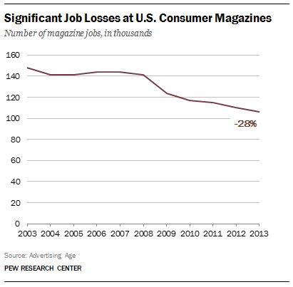 More than 40,000 magazine jobs have vanished since 2003: http://bit.ly/1kPTGla pic.twitter.com/nQPoA0fotD
