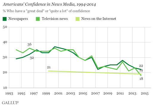 RT @Poynter: American confidence in the media just keeps getting lower, Gallup poll shows: http://bit.ly/1iM0QYd pic.twitter.com/VwIQ5iffpo