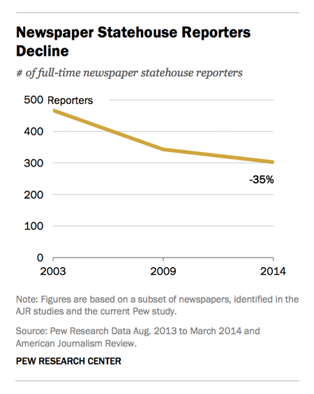Bad 4 democracy! MT @Poynter: Pew: # of FT newspaper statehouse scribes fallen 35% since '03: http://bit.ly/1jtLpKg pic.twitter.com/yy1A2ucDTM