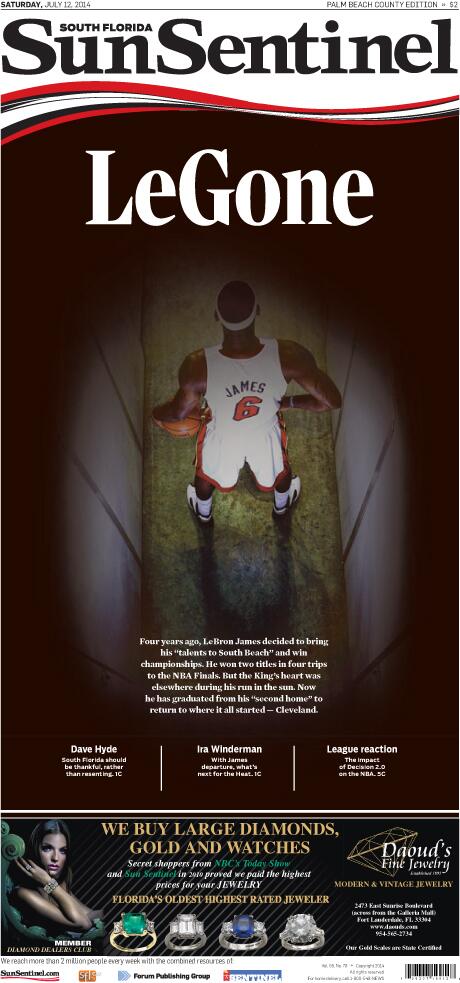 Holy crap! I pitched that. RT @Poynter: “LeGone”: Here’s an early look at tomorrow's Sun-Sentinel front page:pic.twitter.com/IcULqQiiLE