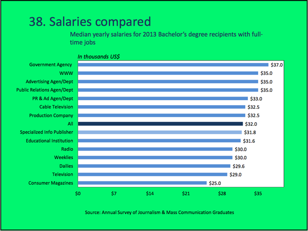 Median starting salary at magazines fell sharply to $25,000 in 2013, per @UGAGrady study: http://bit.ly/1swFRiH pic.twitter.com/lj1FbITsmA