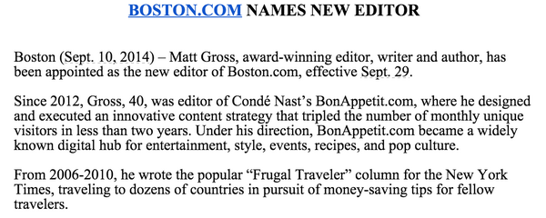 RT @Poynter http://Boston.com names @worldmattworld new editor