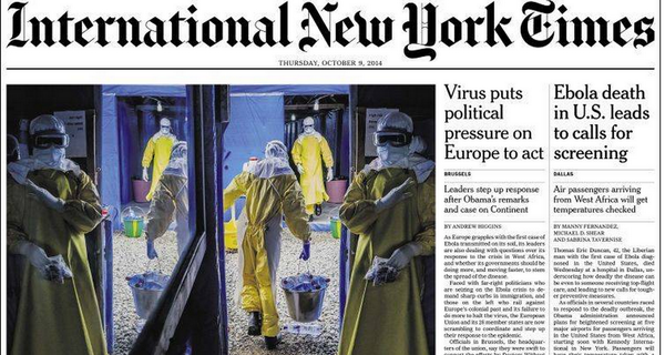 Lots of hazmat suits on front pages around the world today http://www.poynter.org/latest-news/mediawire/273721/images-of-ebola-make-front-pages-around-the-world/ … #Ebolapic.twitter.com/7wsLicYdrd