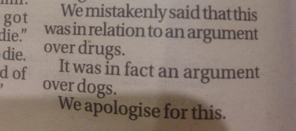 The Newspaper that Mistook Dogs for Drugs. (And other curious corrections) from