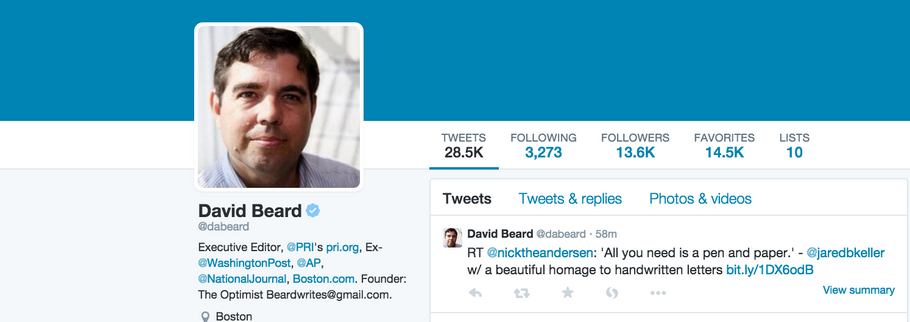 >@mkramer on how PRI’s David Beard makes a Twitter feed worth following http://www.poynter.org/news/media-innovation/318369/melody-kramer-how-pris-david-beard-makes-a-twitter-feed-worth-following/ …pic.twitter.com/eSC7TJkDt0