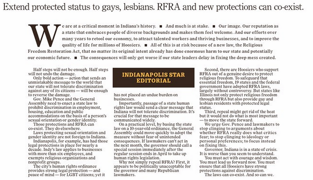 @Poynter @WillMcAvoyACN Well said IndyStar! Too bad you have to solve a problem that never existed. Religious Rights were never in peril!