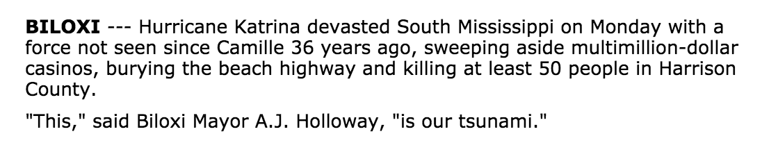 Today in Media History: 2006 Pulitzers honored Hurricane Katrina coverage http://www.poynter.org/news/mediawire/336323/today-in-media-history-2006-pulitzers-honored-hurricane-katrina-coverage/ …pic.twitter.com/cMs6mSov5R