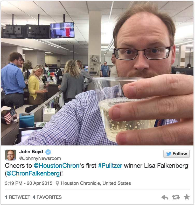 @Poynter @washingtonpost @stltoday Champagne tastes best w #Pulitzer win http://Rebelmouse.com/PulitzerPrize
