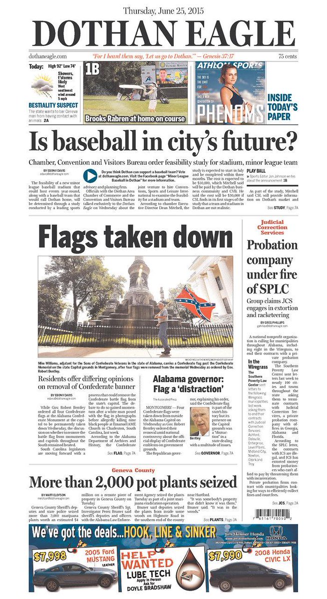 #ConfederateFlags on front pages, day 3 http://www.poynter.org/news/mediawire/353063/confederate-flags-on-front-pages-day-3-including-some-that-came-down/ … (including some that came down)pic.twitter.com/FM1adAoqO3