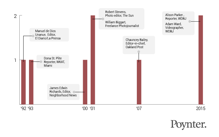 @Poynter Before today, 8 journalists have been murdered while on assignment, at work or for their work in the U.S. since 1992Thanks. Twitter will use this to make your timeline better. UndoUndo