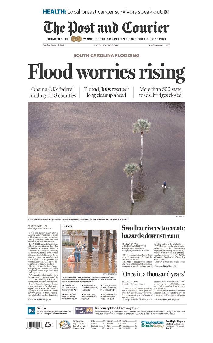 Front page of the day: South Carolina’s deadly floods http://www.poynter.org/news/mediawire/377121/front-page-of-the-day-south-carolinas-deadly-floods/ … from @postandcourierpic.twitter.com/ayM2E71a6O