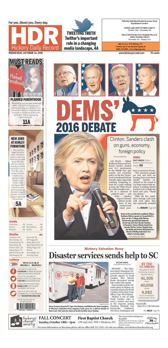 Front pages from Tuesday's #DemDebate http://www.poynter.org/news/mediawire/378722/front-page-of-the-day-the-dems-who-dominated/ …pic.twitter.com/AIhNmxXx6M