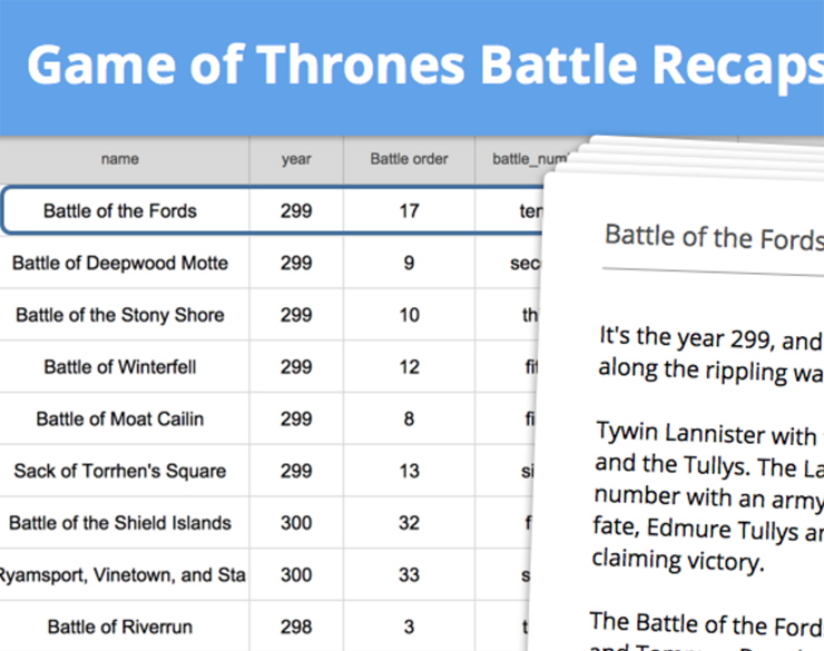 Winter is coming. Or, at least, robot-written battle recaps for "Game of Thrones." http://www.poynter.org/news/mediawire/379809/with-new-product-automated-insights-hopes-to-make-robot-journalism-cheaper-and-more-plentiful/ …pic.twitter.com/644LQ6ZIJ7