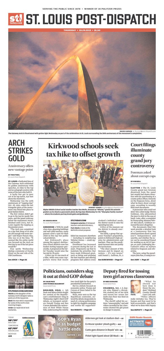 Front page of the day: Happy birthday, Gateway Arch! http://www.poynter.org/news/mediawire/381775/front-page-of-the-day-happy-birthday-gateway-arch/ …